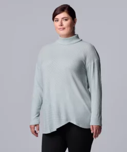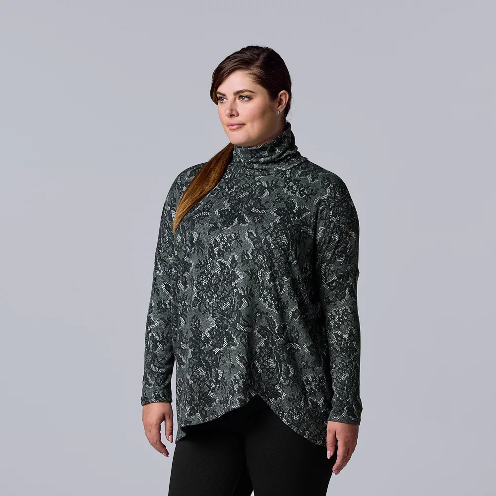 Plus Size Simply Vera Vera Wang Cozy Asymmetrical-Hem Top