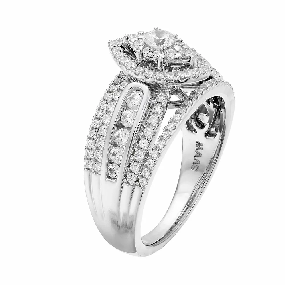 Convey your devotion in a wondrous way when you propose with this Simply Vera Vera Wang engagement ring. Accentuated with rows of illuminating round-cut diamonds, this 14k white gold marquise engagement ring enchants from every direction.