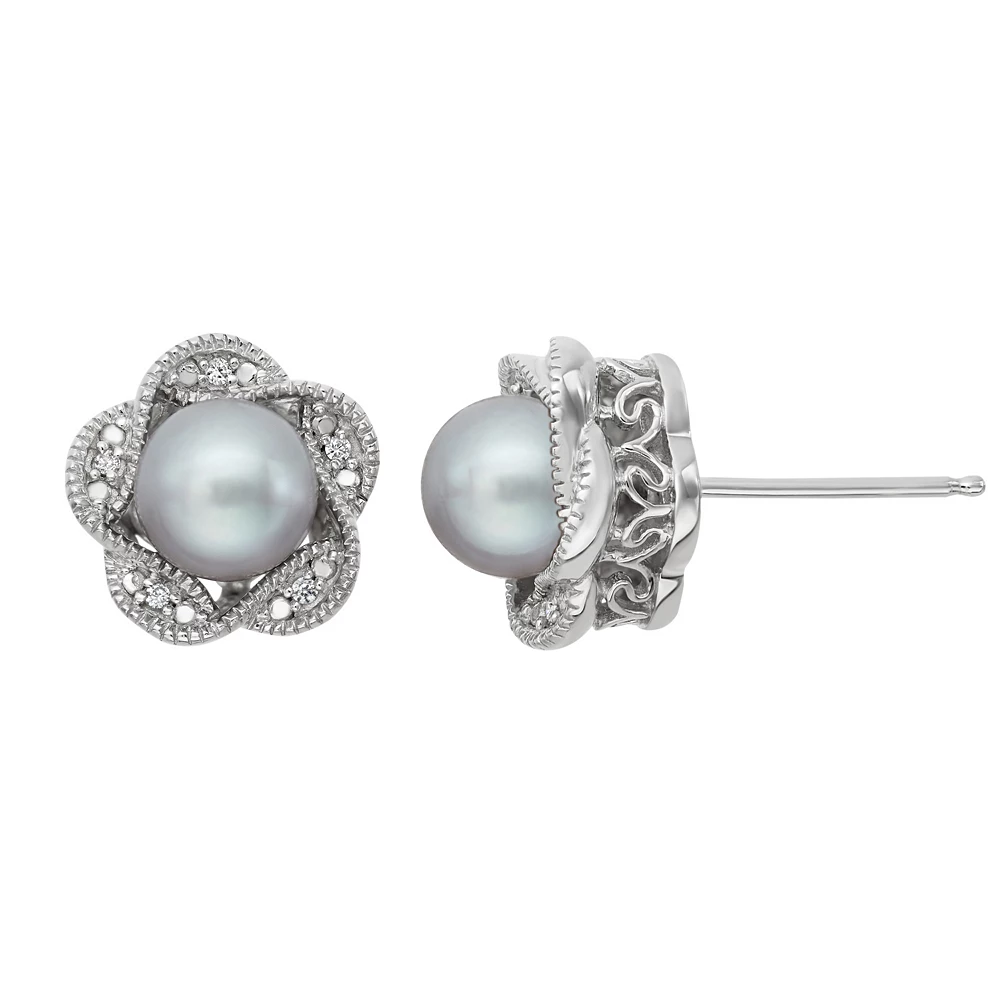 Dyed gray freshwater cultured pearls and diamond accents give these Simply Vera Vera Wang flower stud earrings natural appeal.