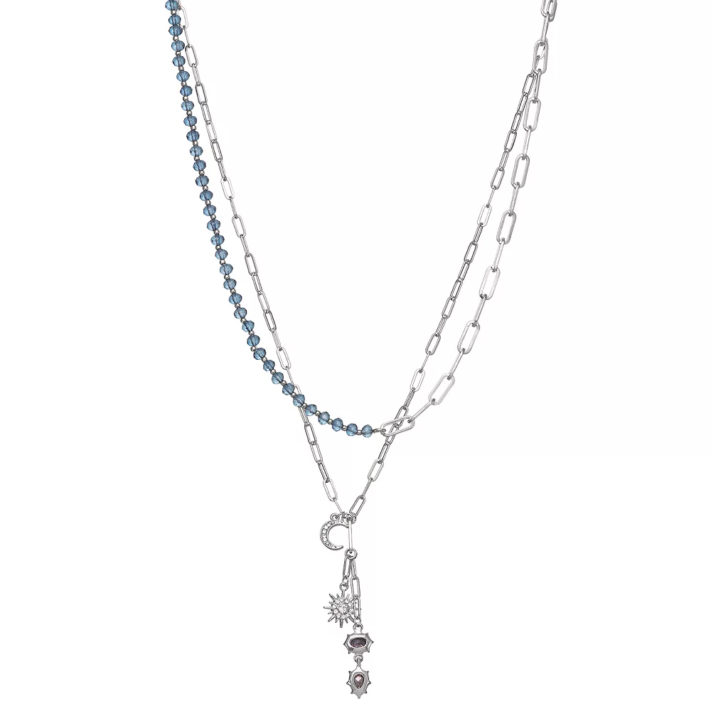 Finish off any ensemble with eye-catching style in this crystal-accented silver tone celestial charm layered necklace from Simply Vera Vera Wang.