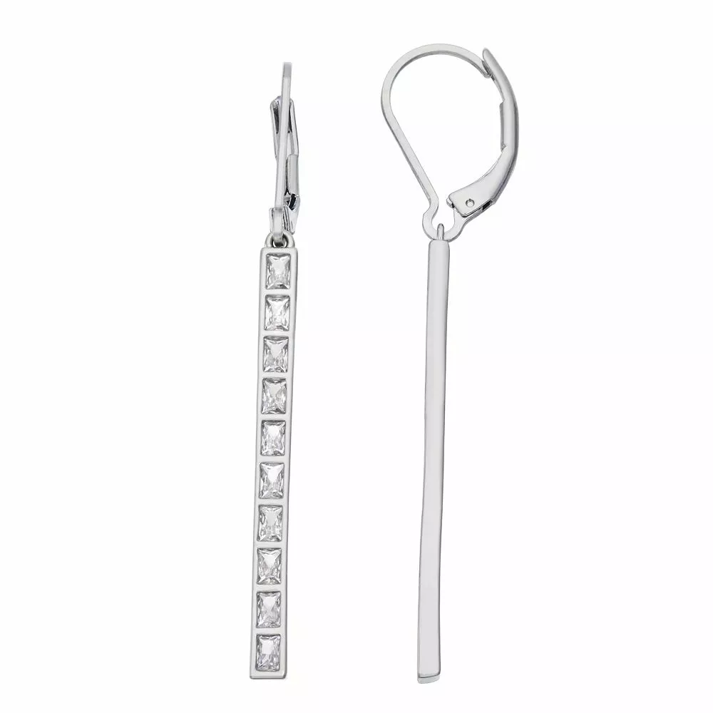 Accent your look with these charming silver tone cubic zirconia linear drop earrings from Simply Vera Vera Wang.