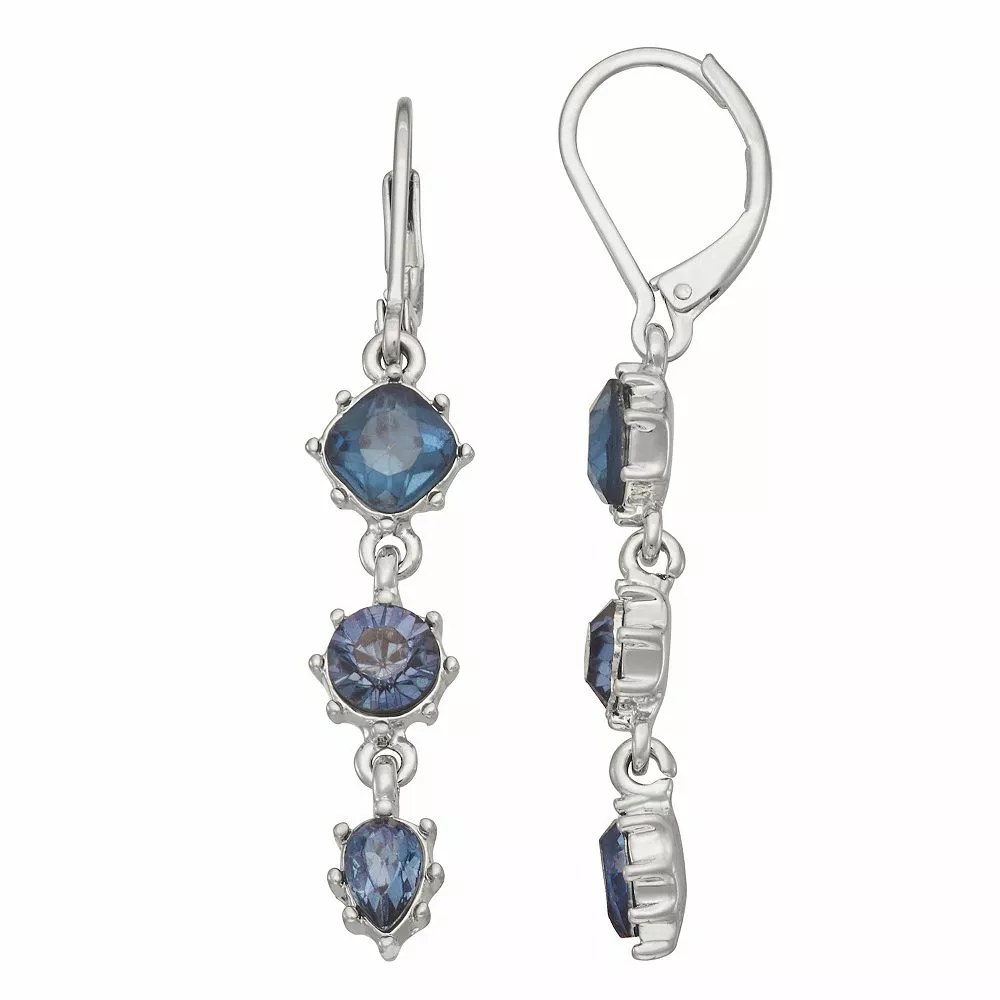 Finish off your ensemble with a pop of color in these blue simulated crystal-studded silver tone drop earrings from Simply Vera Vera Wang.