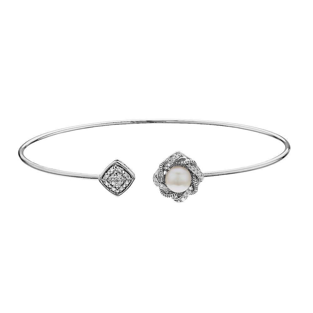 Adorned with a freshwater cultured pearl and shimmering diamonds, this Simply Vera Vera Wang bangle bracelet offers a luxurious look.