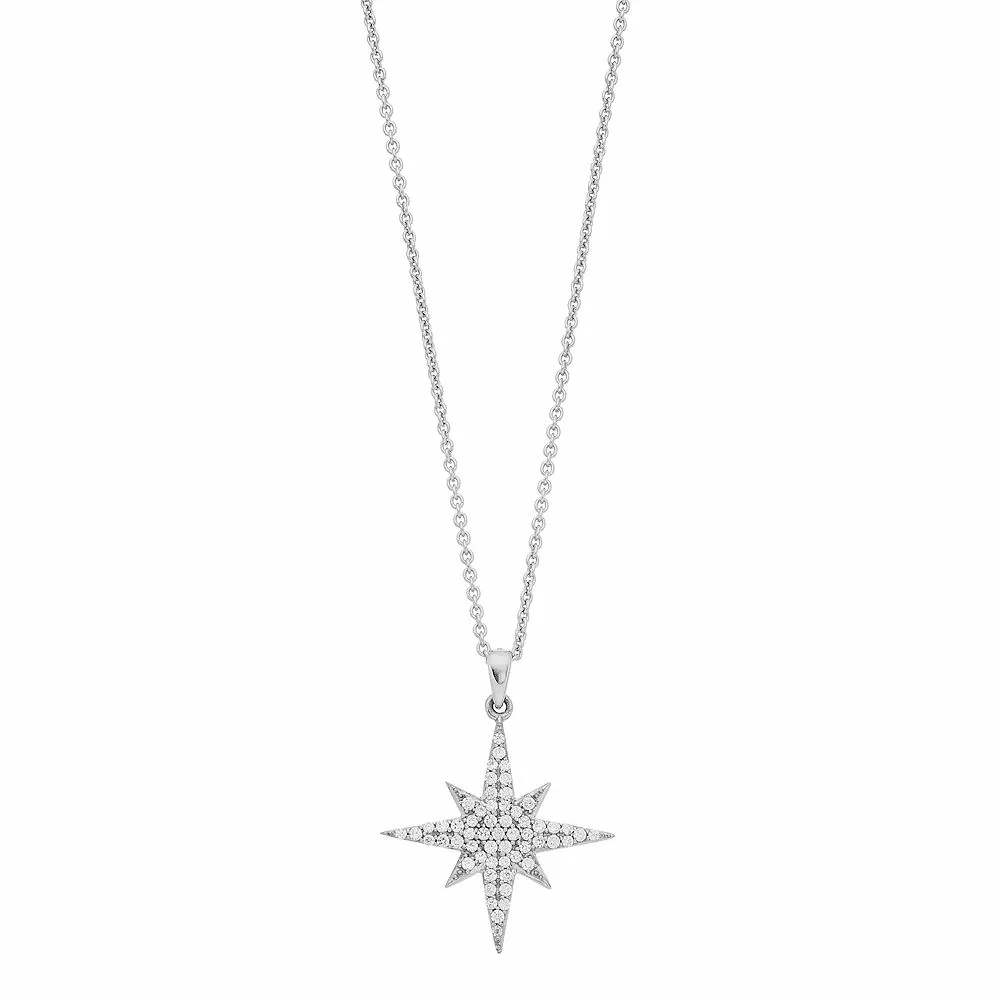 Decorated with a cluster of diamonds set in a starburst motif, this Simply Vera Vera Wang pendant makes an enchanting addition to your look.
