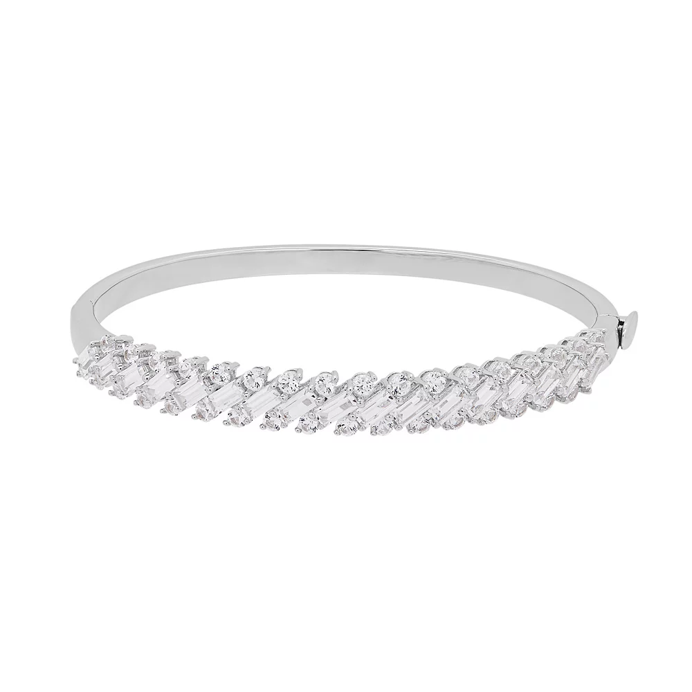 Featuring baguette- and round-cut, lab-created white sapphires, this Simply Vera Vera Wang hinged bangle bracelet embodies elegance.