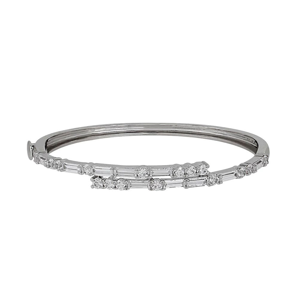Emphasized with lab-created white sapphire stones, this Simply Vera Vera Wang bypass bangle bracelet heightens your look with captivating beauty.