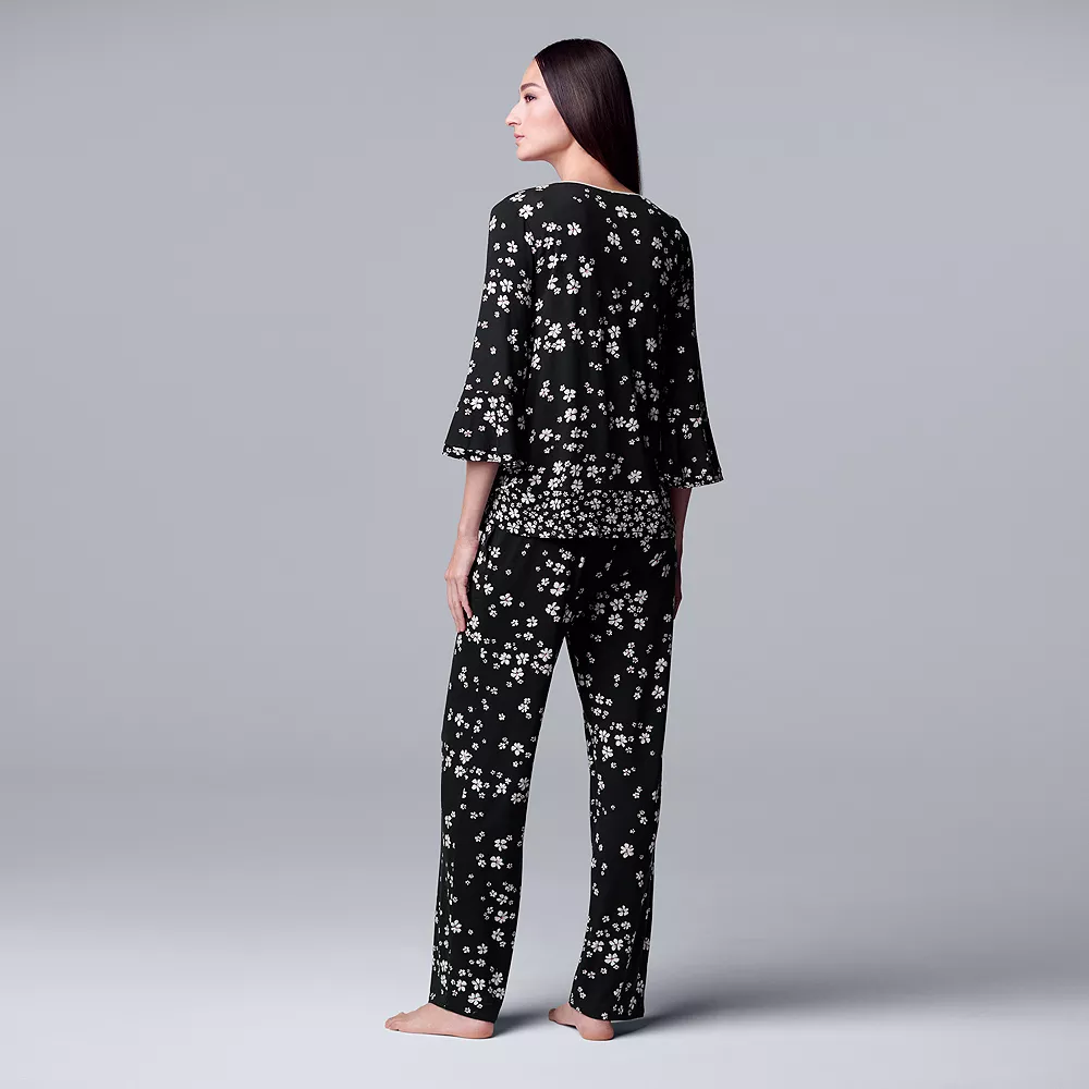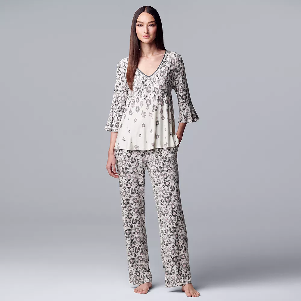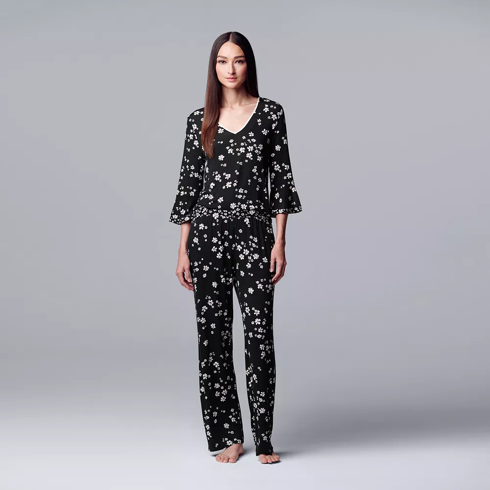 Featuring a cozy jersey construction and coordinating look, this women’s Simply Vera Vera Wang pajama set will give you continuous comfort all night long.