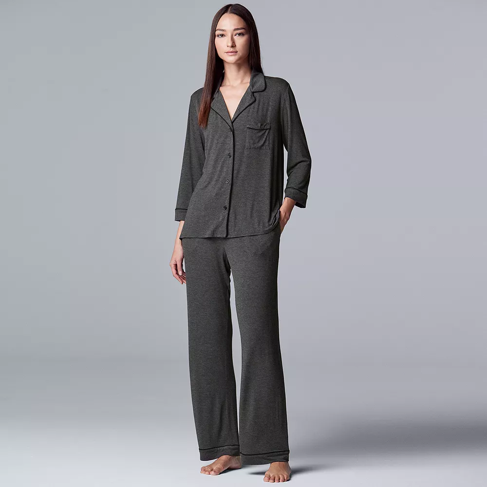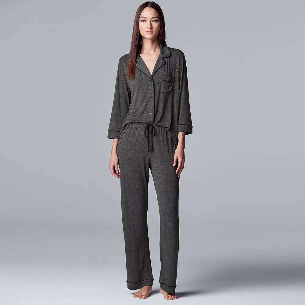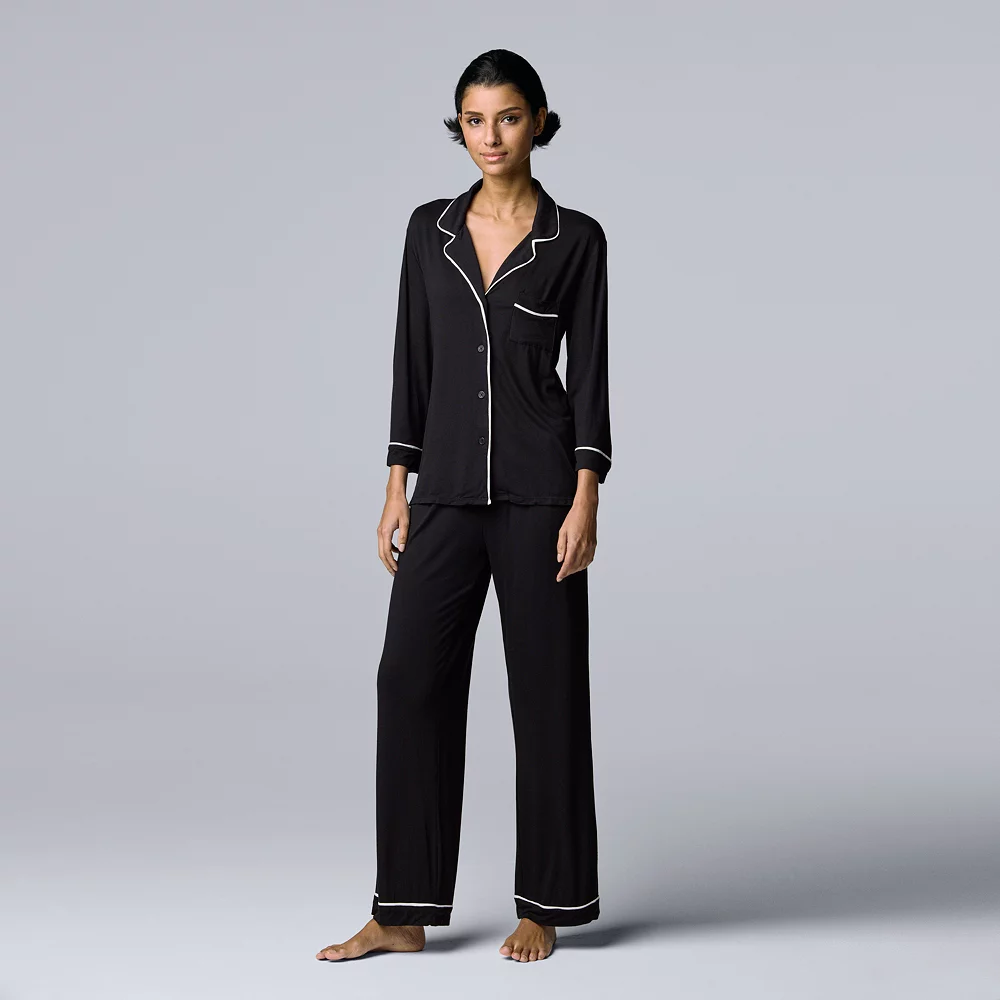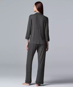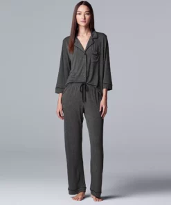 Women’s Simply Vera Vera Wang Basic Luxury ¾ Sleeve Pajama Shirt & Pants Sleep Set