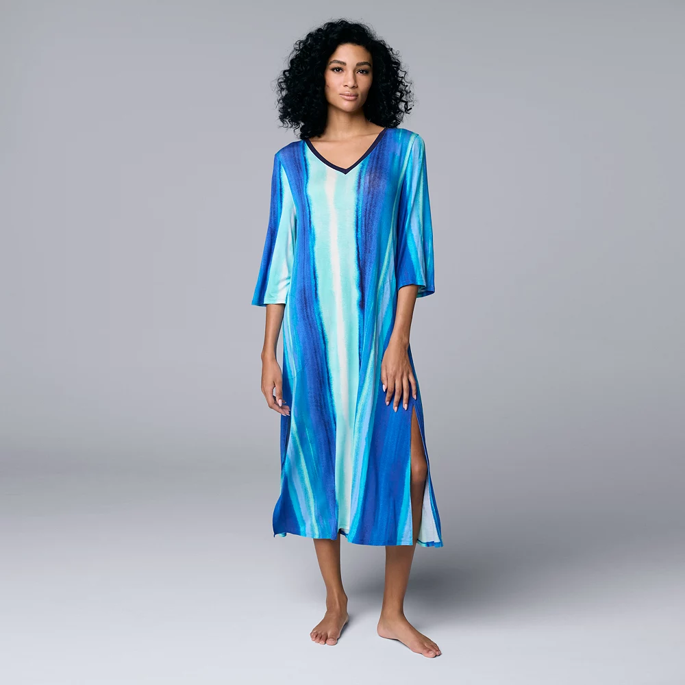 Featuring a soft jersey construction and fun print, this women’s Simply Vera Vera Wang maxi caftan will have you lounging in comfort and style.