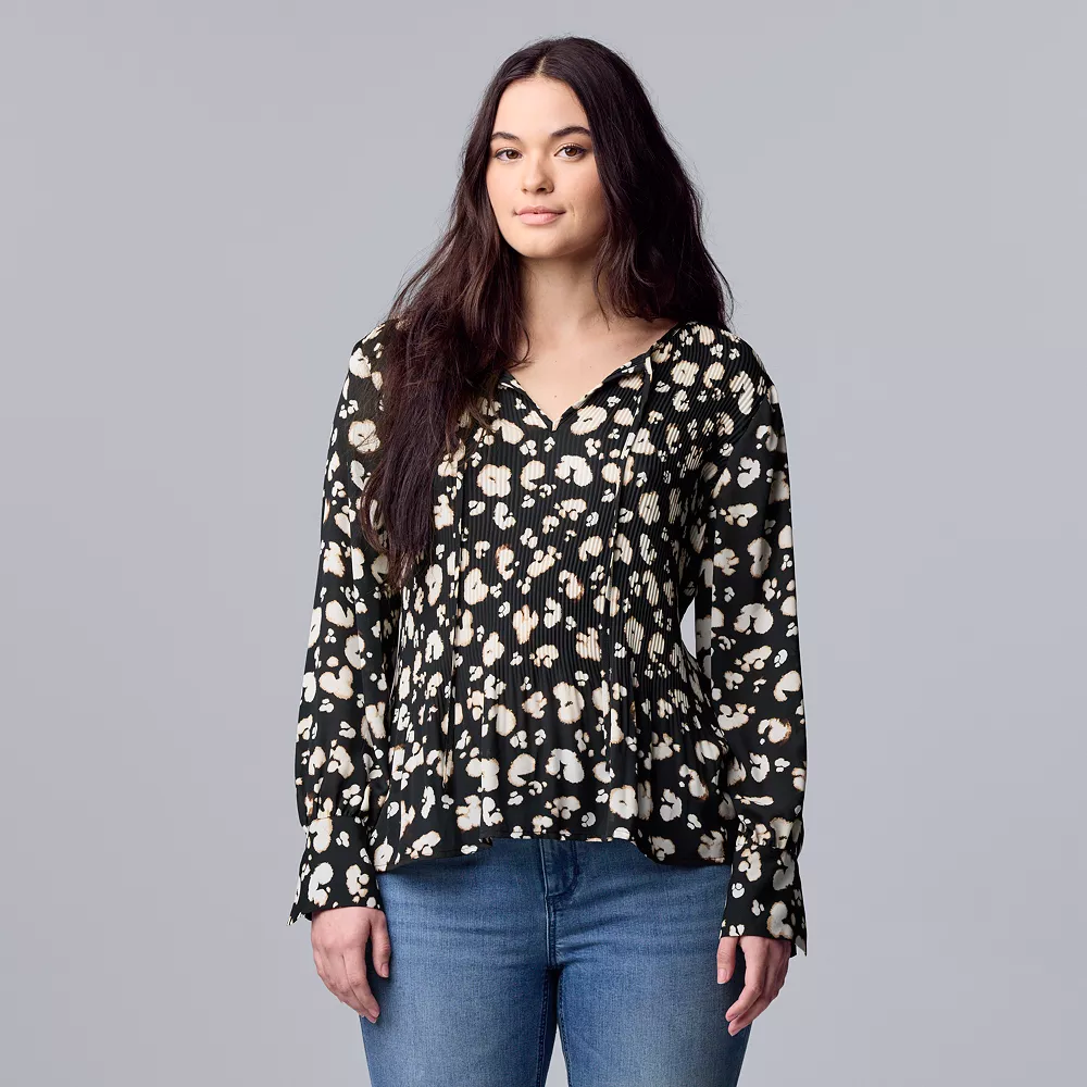 Women’s Simply Vera Vera Wang Pleated Splitneck Top