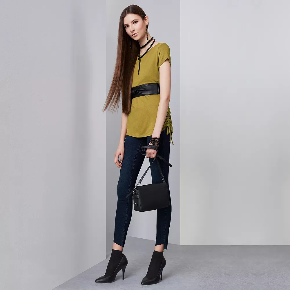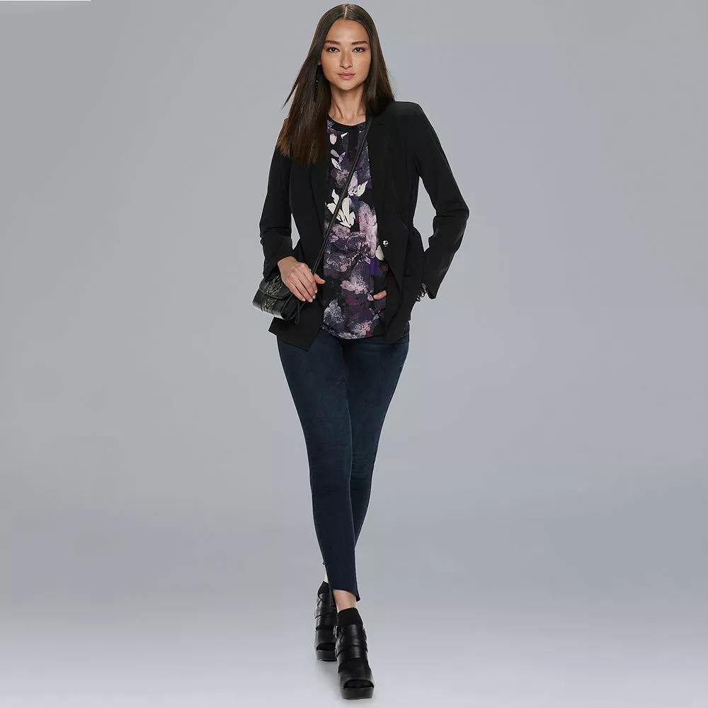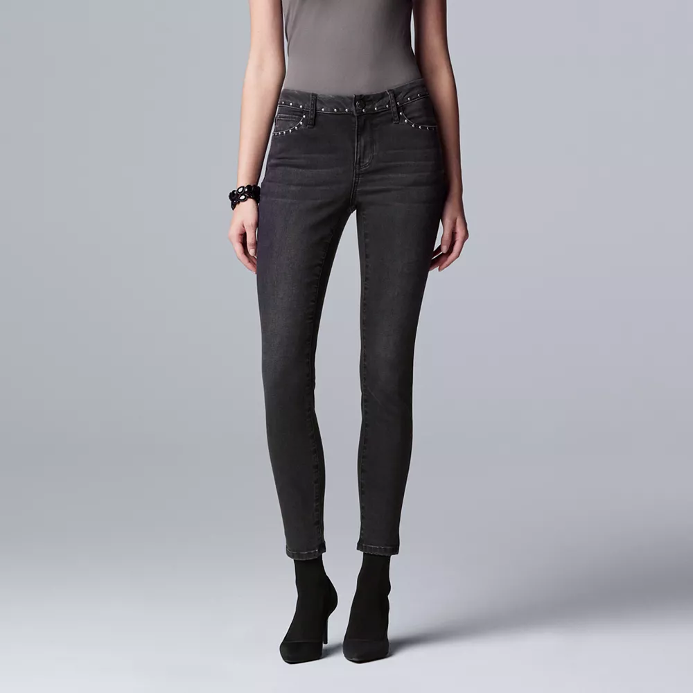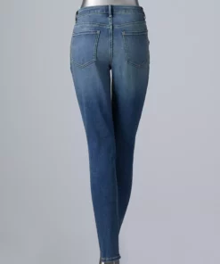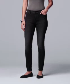 Feel comfortable and look cute in these women’s Simply Vera Vera Wang skinny jeans.