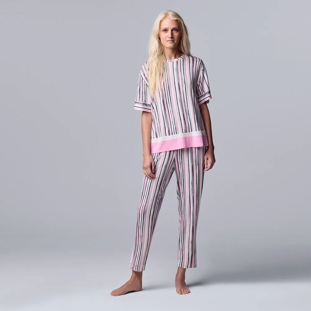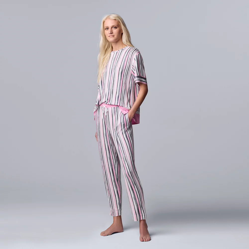Women’s Simply Vera Vera Wang Short Sleeve Pajama Top & Cropped Pajama Pants Sleep Set