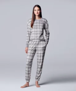 Featuring a cozy velour construction, this coordinating pajama set from Simply Vera Vera Wang will bring you continuous comfort all night long.